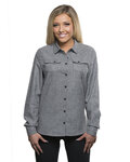 5.4 oz. 80/20 cotton/poly; 2 chest pockets with button flaps; Button cuffs; Hem bottom; Half moon back yoke; Elongated tail ; Modern fit;